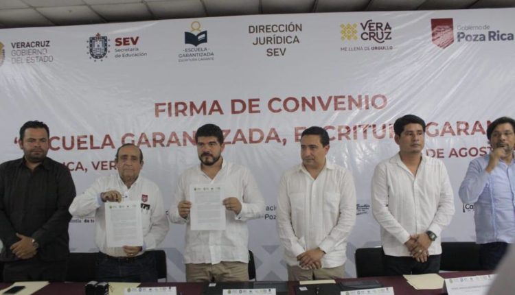 Con la suma de 30 municipios del norte del estado, son más de 100 los que han firmado convenios de colaboración con la Secretaría de Educación de Veracruz (SEV) para acreditar la propiedad y dar certeza jurídica a planteles escolares mediante el programa “Escuela Garantizada, Escritura Garante”.