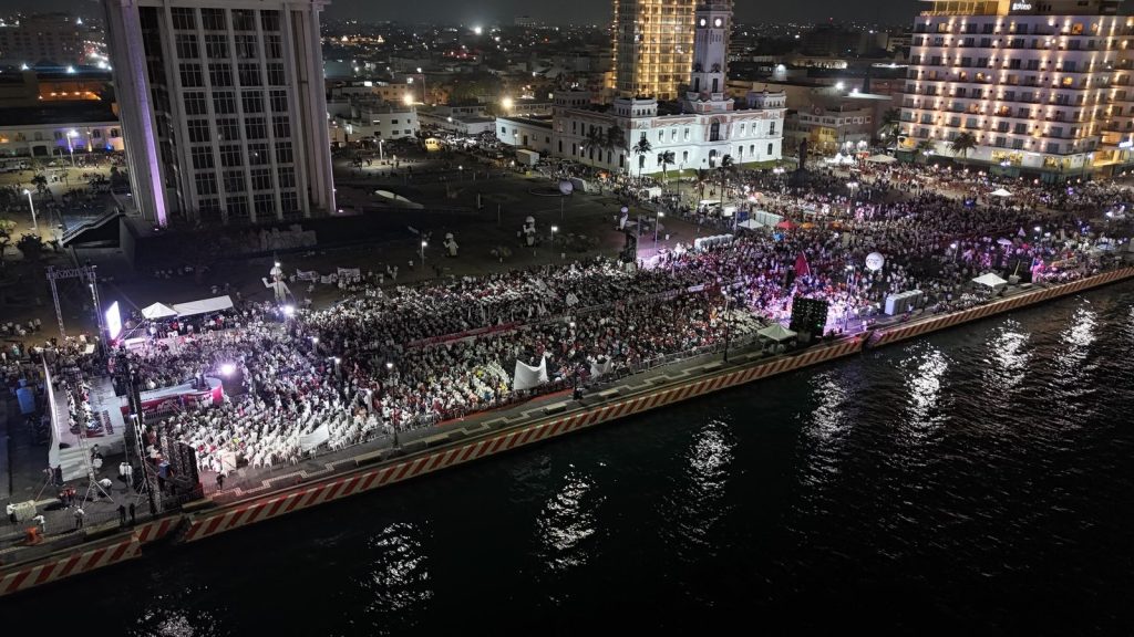 ^Malecón de Veracruz a reventar de simpatizantes, militantes y ciudadanos en general que apoyan la candidatura de Rocío Nahle.