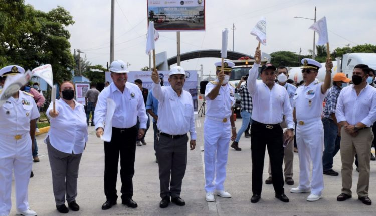 Lic. Amado Cruz Malpica, Presidente Municipal del Honorable Ayuntamiento de Coatzacoalcos, Vicealmirante Retirado Miguel Ángel Sierra Carrasco, Director General de la Administración del Sistema Portuario Nacional Coatzacoalcos, Almirante Retirado Sergio Antonio Islas Sánchez, Capitán de Puerto, Vicealmirante Marcos Gutiérrez Hernández, Comandante de la Séptima Zona Naval Militar en Coatzacoalcos, Lic. María Lourdes Hidalgo Carrión, Presidenta de la Cámara Nacional de Comercio, Servicios y Turismo de Coatzacoalcos, Lic. Luis Armando Escamilla, Presidente de la Cámara Mexicana de la Industria de la Construcción, delegación Coatzacoalcos; integraron el estrado insitu y fueron testigos del importante evento.