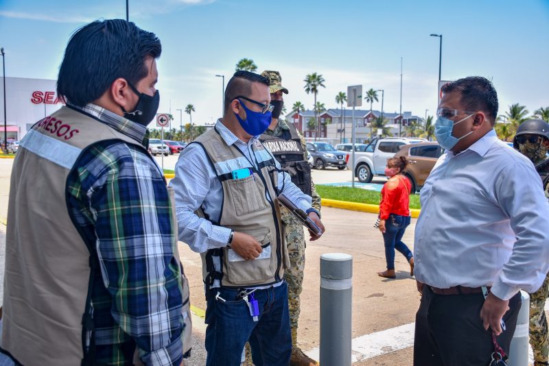 Coatzacoalcos, Ver.- Personal de la Dirección de Ingresos efectuó un recorrido por los negocios ubicados en plazas comerciales del poniente de la ciudad, con el objetivo de verificar que estén cumpliendo con las medidas sanitarias dentro del SEMÁFORO NARANJA y los lineamientos de la NUEVA NORMALIDAD establecidos por el Gobierno Federal, a través de la Secretaría de Salud.