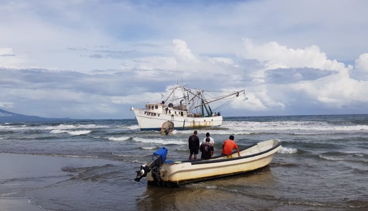 Barco camaronero del estado de Campeche encalla en las playas de Coatzacoalcos