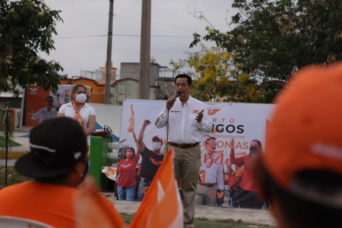La tarde de este jueves, Alberto Mijangos, candidato por Movimiento Ciudadano a la Presidencia Municipal llevó acabo el primer intercolonias en ciudad Olmeca
