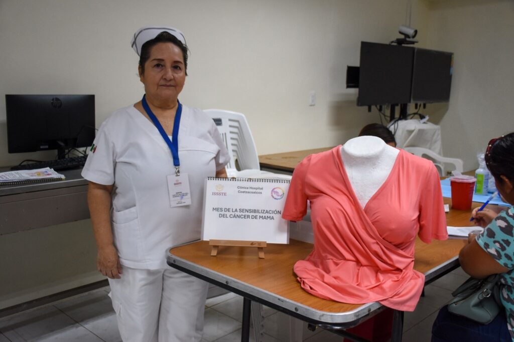 Por su parte, la encargada de Medicina Preventiva de la clínica, Reina López Antonio, acompañada de la médico epidemiológico, Leonor Jiménez Bartolo y de la jefa de Enfermeras, Beatriz Valdivieso Montiel, dio una breve plática acerca de la autoexploración y su importancia para detectar signos o síntomas de la enfermedad.