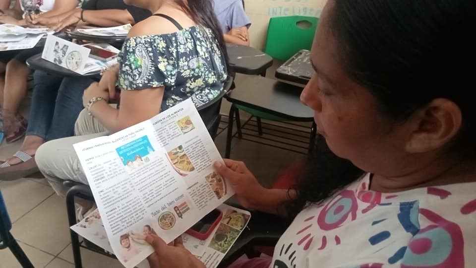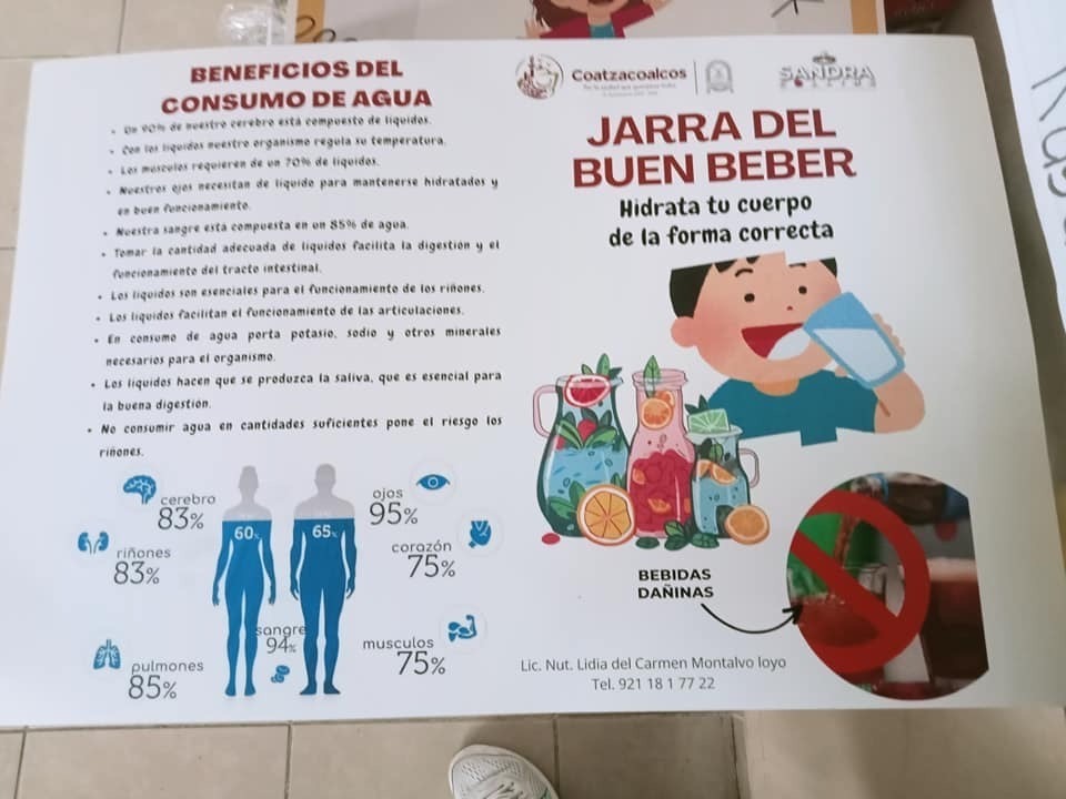 La especialista en nutrición comentó los beneficios de una dieta equilibrada; hizo propuestas de alimentos con mayor aporte energético, vitaminas y minerales para el desarrollo muscular y nutricional; así como proporcionó menús saludables y les dio orientación sobre el consumo adecuado de agua natural y la jarra del bien beber.