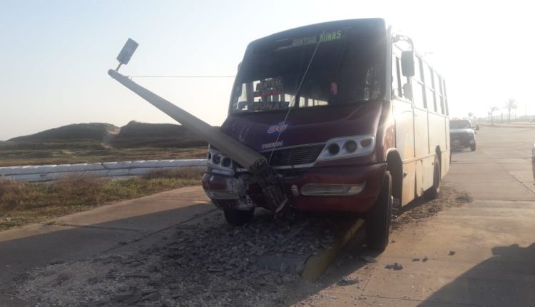 Un autobús de pasajeros se impactó esta mañana contra un poste de concreto ubicado sobre el malecón costero de Coatzacoalcos, no hubo reporte de personas lesionadas.