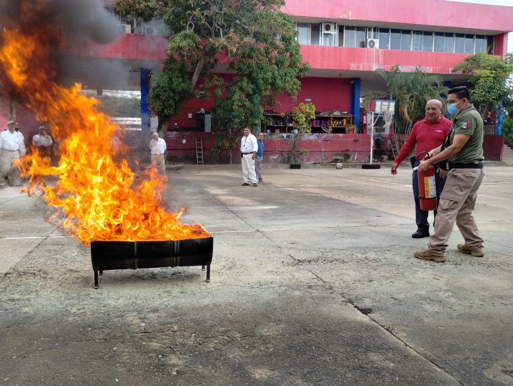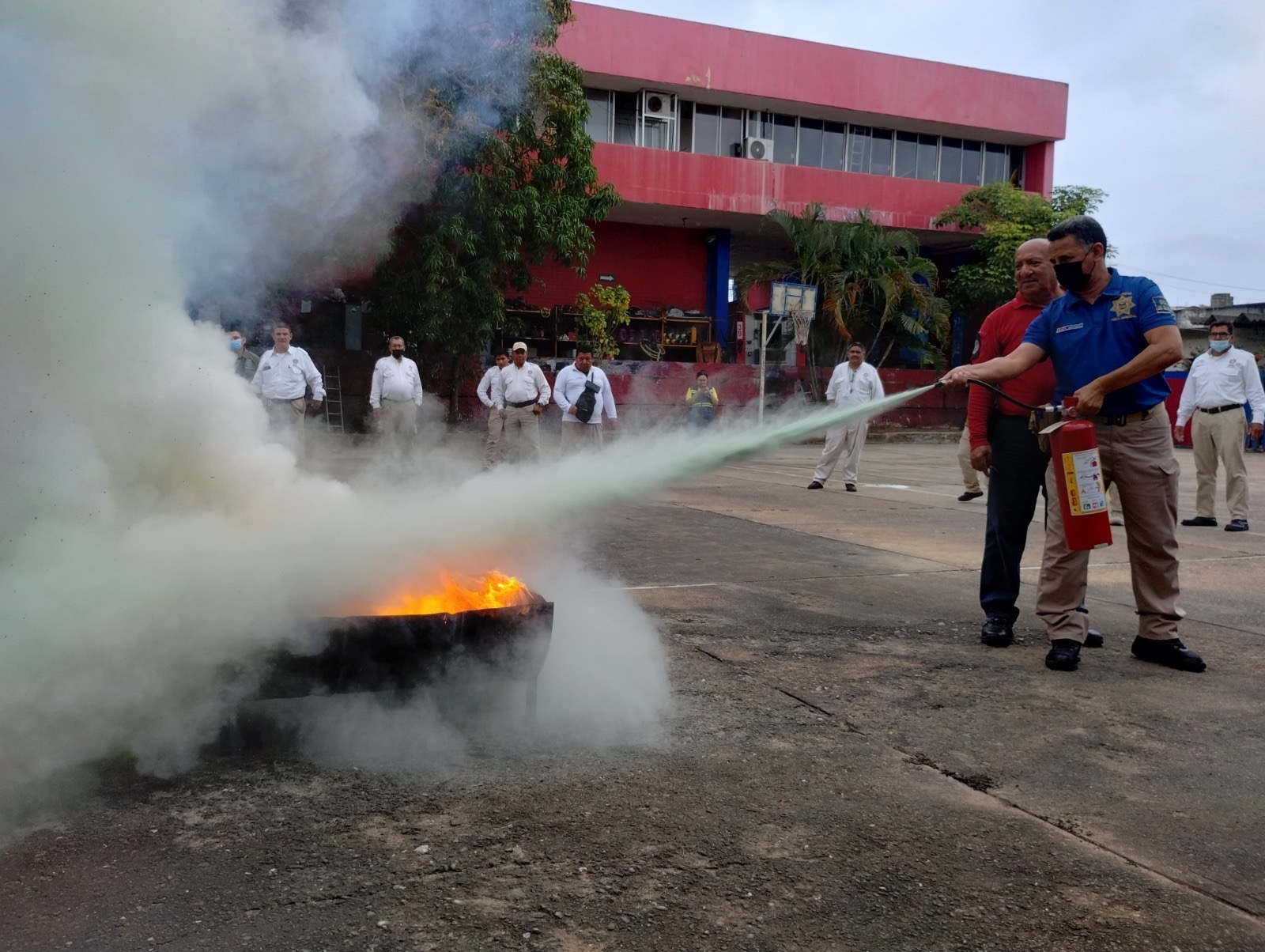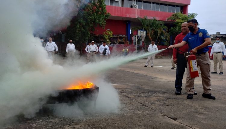 Personal del cuerpo de seguridad física municipal que resguardan diversas áreas públicas del Ayuntamiento de Coatzacoalcos participaron en un curso contra incendios que brinda la Unidad de Protección Civil y Bomberos.
