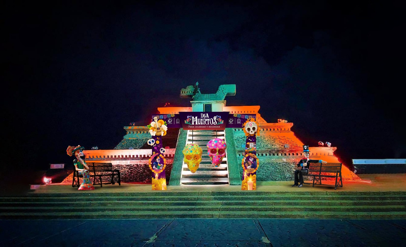 “Va a constar de un marco decorativo donde la gente podrá sentarse o posicionarse detrás de las calaveras para poderse tomar fotos y puedan pasar un momento agradable con sus familias o amigos disfrutando del atardecer”.