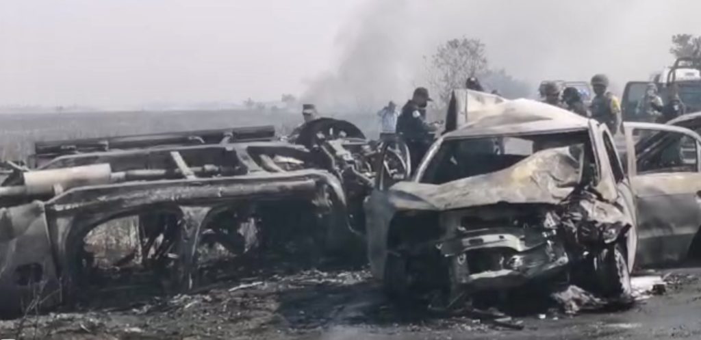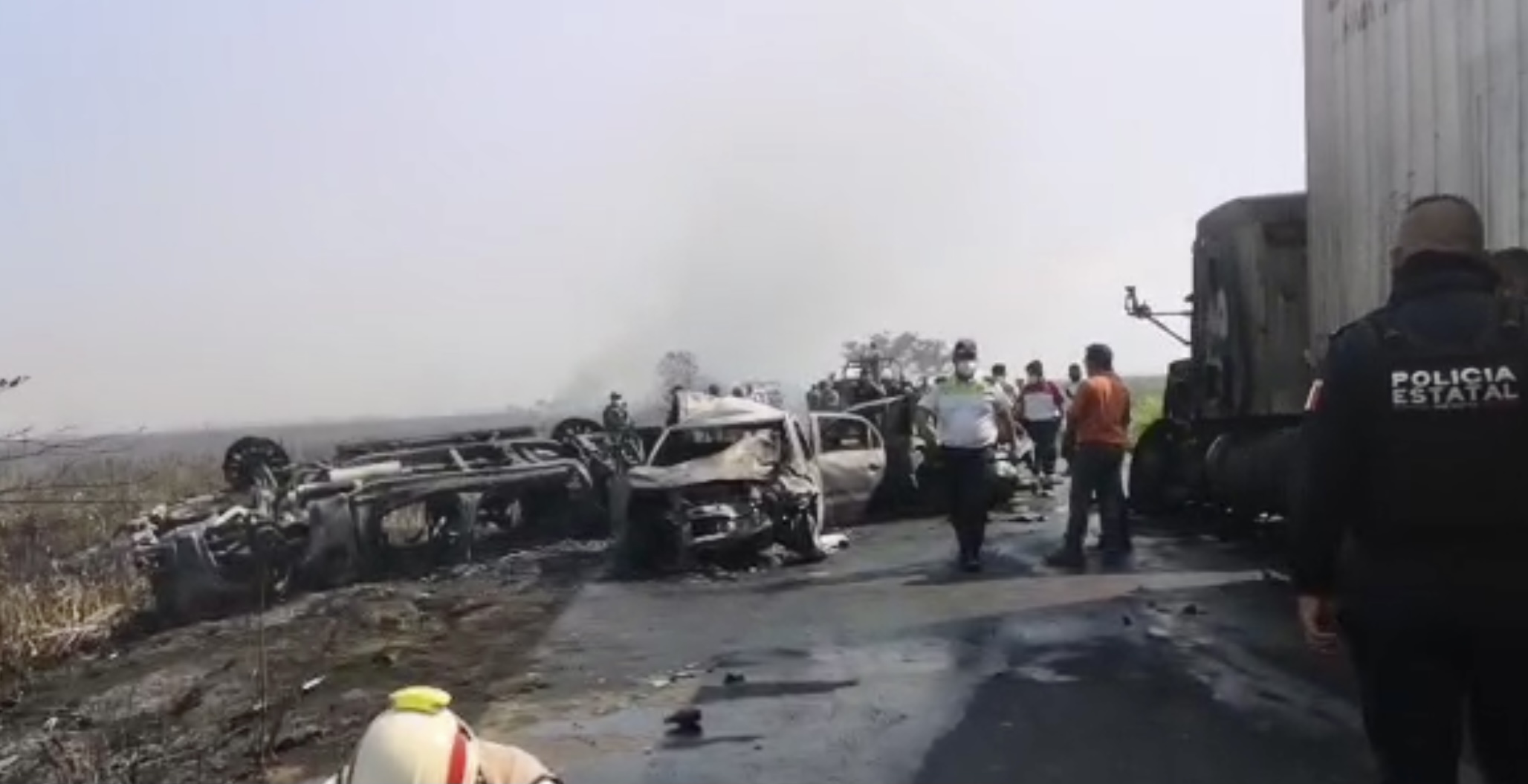 Este fuerte accidente que por fortuna no dejó personas lesionadas, ni fallecidas , pero si daños materiales cuantificables, ocurrió esta tarde sobre el mencionado tramo, donde la visibilidad es nula debido a la quema de pastizales que lleva varios días por las altas temperaturas. Esto provocó que la pesada unidad impactará de lleno a otras más que circulaba sobre la misma carretera.