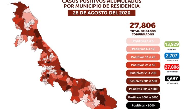 El número de positivos acumulados es de 27 mil 806 (+135 nuevos) en 200 municipios; los casos activos son 789, es decir, los de mayor probabilidad para transmitir la enfermedad por haber iniciado síntomas en los últimos 14 días.