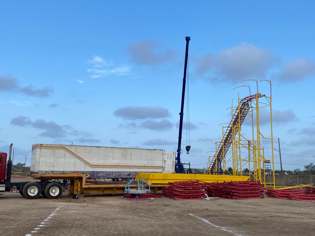 Desde las tradicionales tazas voladoras hasta los carros chocones y otros juegos extremos, comenzaron a llegar para su correcta instalación en el terreno ubicado en la parte posterior del recinto ferial.