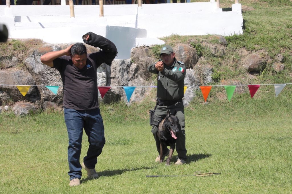 Acompañado del coordinador general de Comunicación Social, Iván Luna Landa, resaltó la instrucción que reciben los perros, la cual está certificada por Estados Unidos, Francia, España, Canadá, Bosnia, Republica Dominicana y Colombia en lo referente a detección de narcóticos y artefactos explosivos, búsqueda de personas, guarda e intervención táctica.