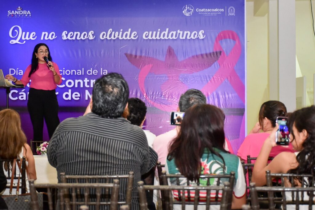 Bajo el lema “que no senos olvide cuidarnos” el gobierno de Coatzacoalcos a través de la regiduría segunda, a cargo de María Sandra Collins Coronel, llevó a cabo un programa conmemorativo del mes rosa en concientización del cáncer de mamá.