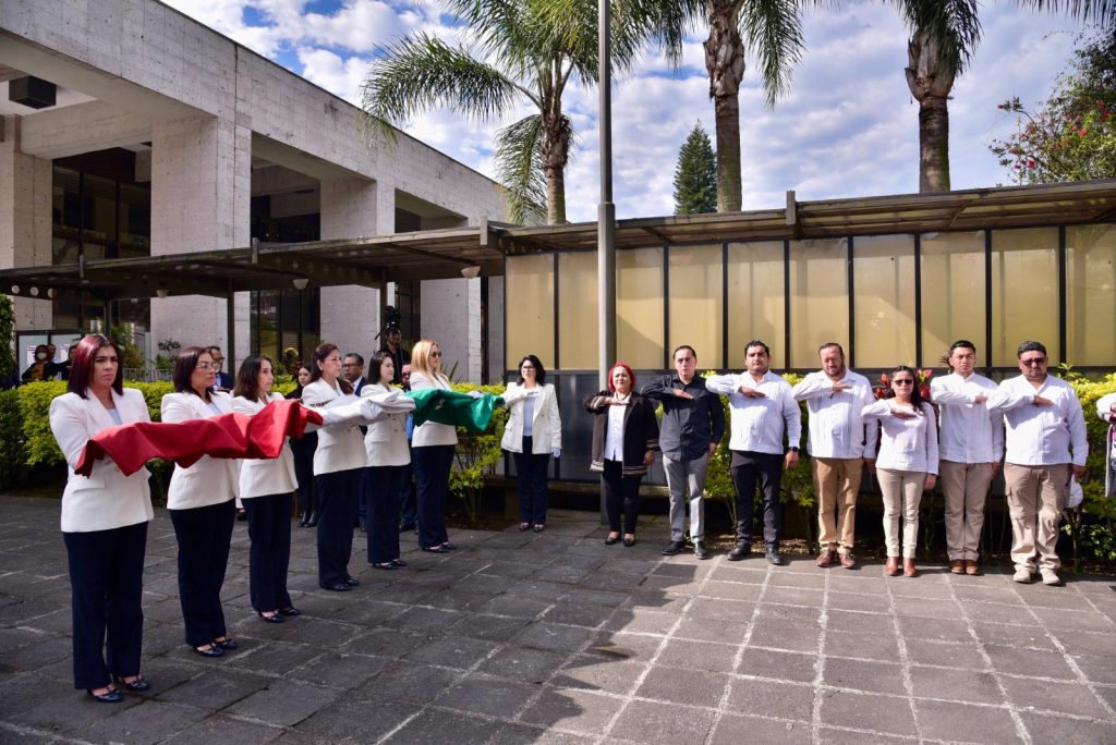 Previamente y con el apoyo de la banda de guerra y la escolta del Sindicato Único de Trabajadores al Servicio del Poder Legislativo (SUTSPL), las y los presentes realizaron los honores a la Bandera.