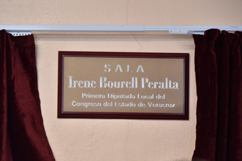 Qué mejor nombre, destacó Mendoza Madrigal, que el de Irene Bourell Peralta, quién fue la primer diputada local electa en la XLIV Legislatura Local, en el período de 1956 a 1959 y también la primera Diputada Federal por el Estado de Veracruz, siendo además la primer representante de la entidad en formar parte de la Mesa Directiva de la Cámara de Diputados Federal.