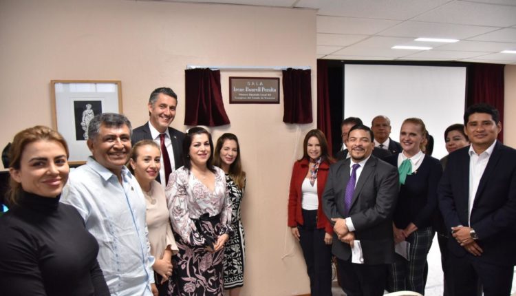 Este día será recordado como una fecha especial, dentro de la historia de la LXV Legislatura, señaló la doctora Mónica Mendoza Madrigal, directora del Centro de Estudios para la Igualdad de Género y Derechos Humanos, del Congreso del Estado, al hacer uso de la voz, previo a la develación de la placa que establece que a partir de esta ocasión, el lobby del Salón de Plenos llevará el nombre de Irene Bourell Peralta, primera mujer legisladora en la entidad.