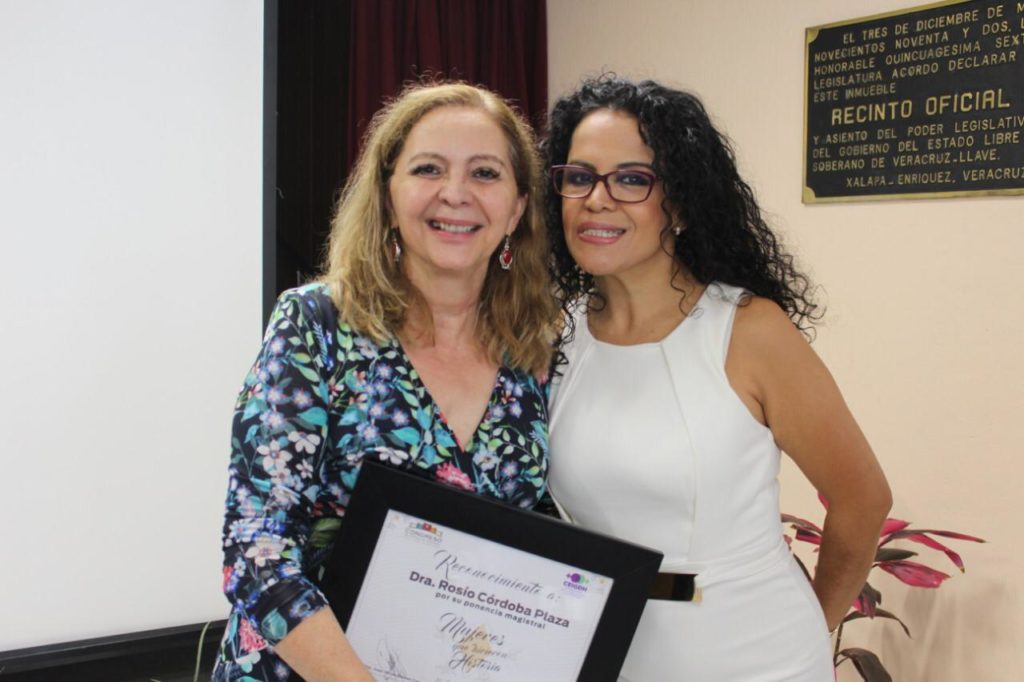 Posteriormente, la doctora Rosío Córdoba Plaza, egresada de la licenciatura en Antropología Social por la Universidad Veracruzana; maestra y doctora en Ciencias Antropológicas por la Universidad Autónoma Metropolitana-Unidad Iztapalapa, e investigadora, Académica de Carrera Titular C, y miembro del Sistema Nacional de Investigadores, nivel III; ofreció la conferencia magistral: “Mujeres que hicieron historial: las precursoras”, en torno a los primeros años de participación política de las mujeres en México.