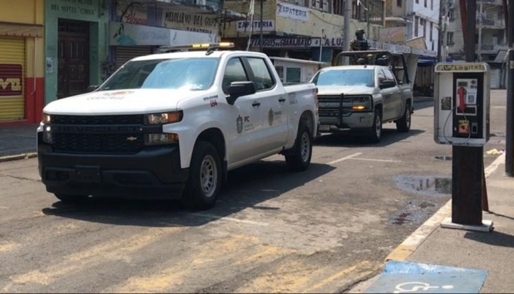 La unidad va acompañada de una patrulla de la Marina en la zona de mercados de Veracruz.
