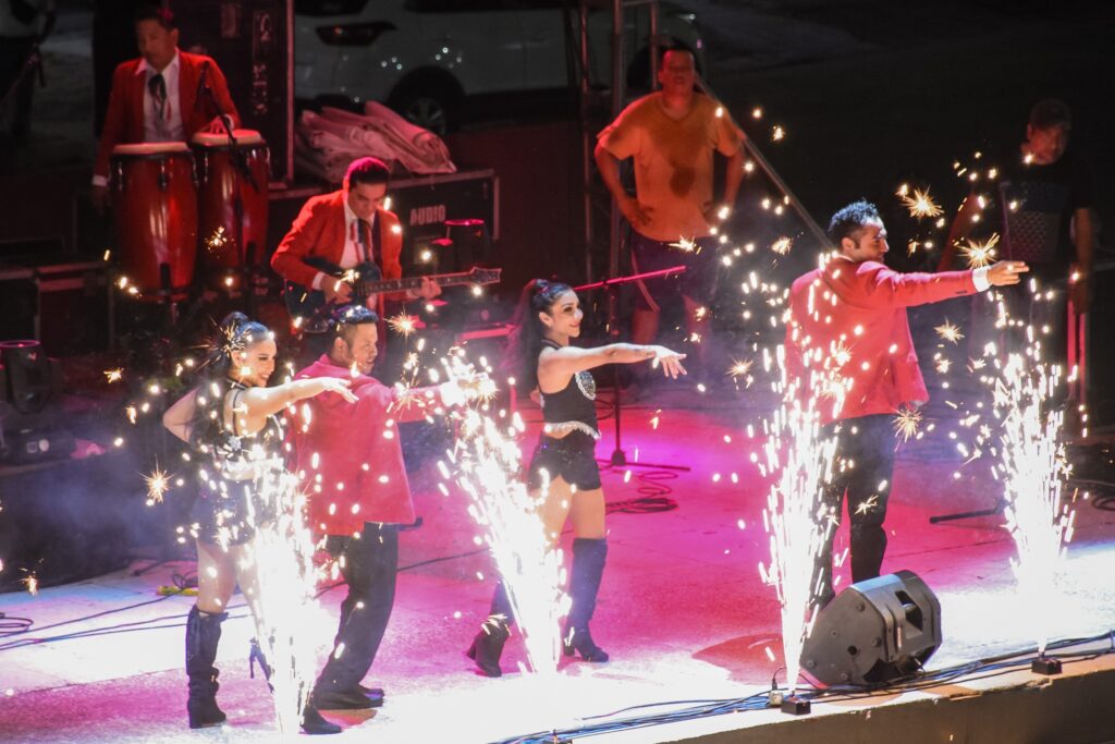 La noche mexicana comenzó desde las 19:00 horas, con las interpretaciones de la Orquesta de Música Popular del Ayuntamiento y del grupo musical ‘Rojo Cereza’, quienes pusieron a bailar al público con popurrís mexicanos, salsa, cumbia, danzón, bolero, pop, entre otros.