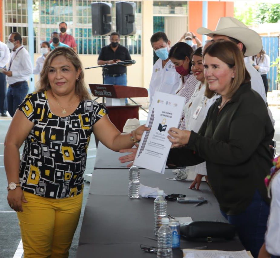 Entrega de escrituras a escuelas, justicia social para la niñez veracruzana: Cecilia Guevara