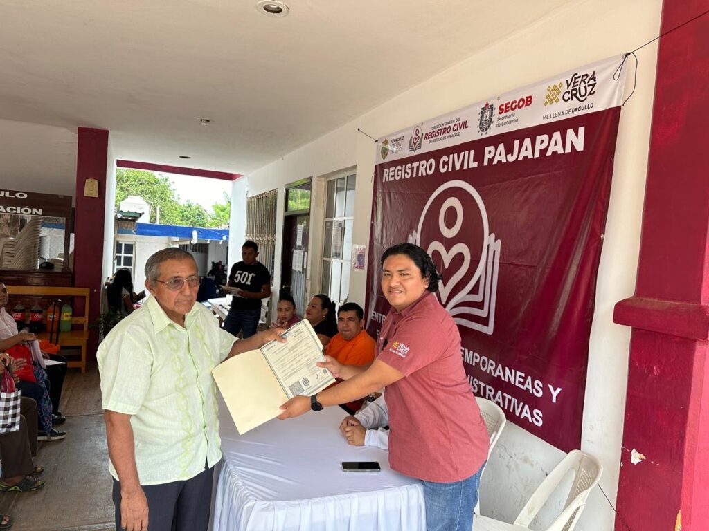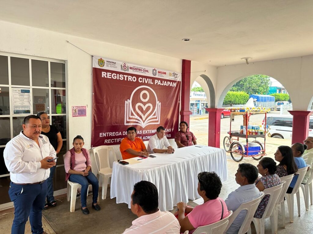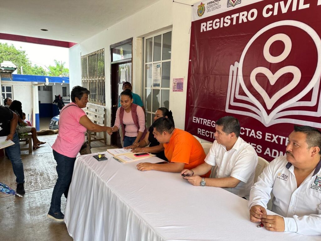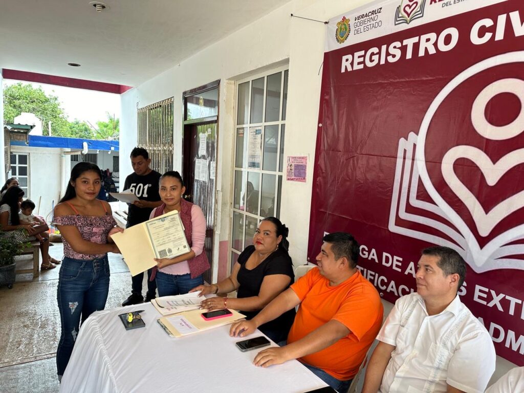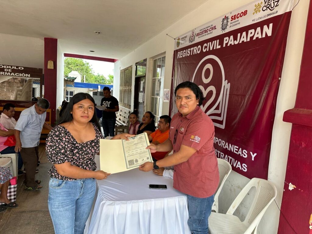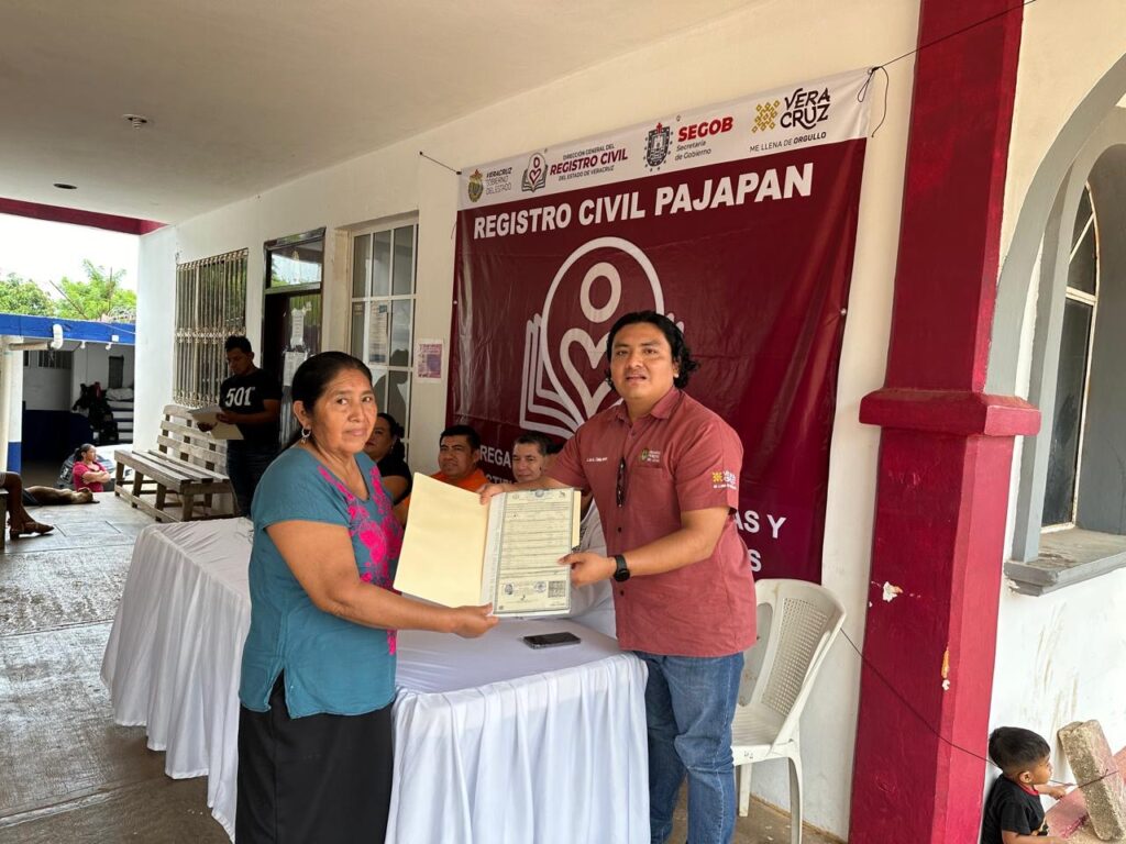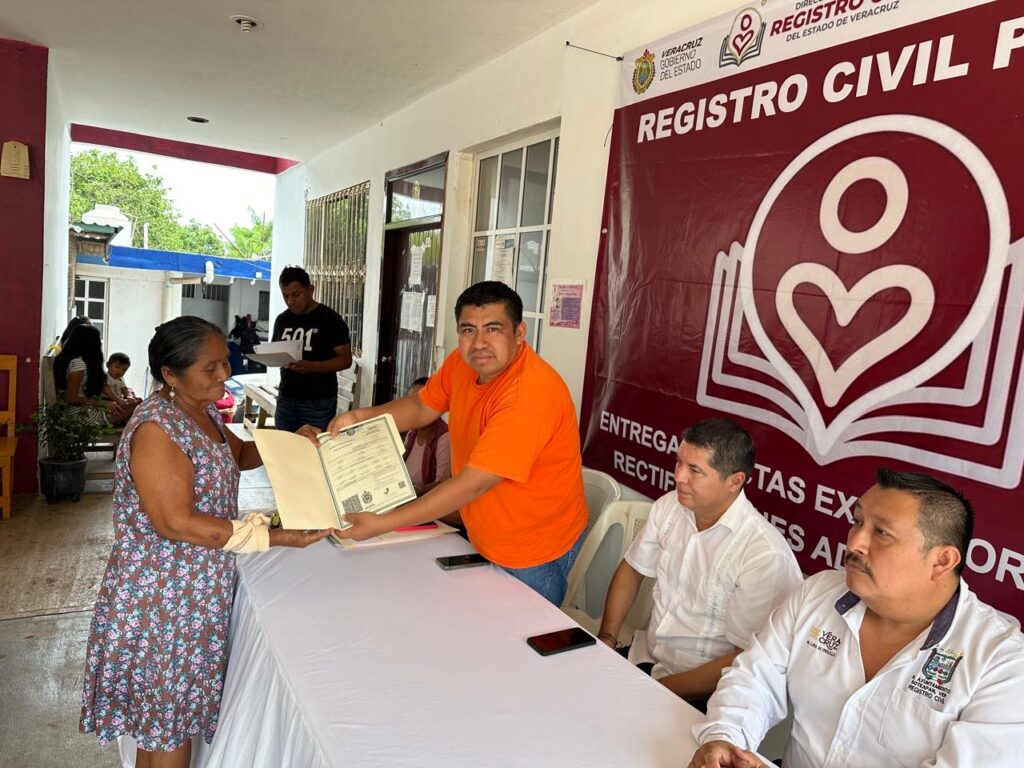 Oficial de Registro Civil de Pajapan, Ing. Katy Silva García, apoya a comunidad y entrega gratuitamente actas de nacimiento extemporáneas y rectificaciones administrativas a habitantes de esta localidad.