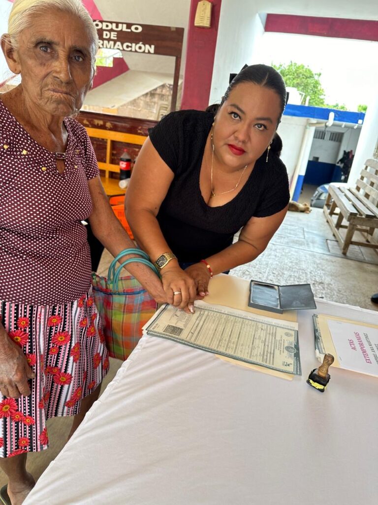 El pasado jueves 20 de junio y en tan solo dos meses, la Ing. Katy Silva García y su asistente el Ing. Nathanael Martínez Candelario, dieron la tarea de solucionar el rezago que existía en esta comunidad, donde 39 usuarios fueron los primeros beneficiados con su documentación de Acta de Nacimiento.