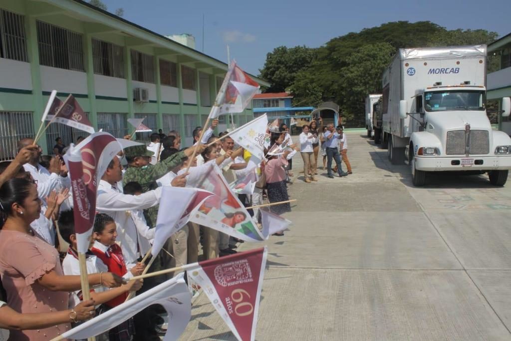 Asistieron, la responsable de Distribución de Libros de Texto Gratuitos en Veracruz, Rafaela Díaz Rivera; la directora del centro escolar, Jazmín Flores Hernández; el delegado regional de la SEV en Tantoyuca, Sergio Hernández Cortez, y el comandante del 74º Batallón Militar, José Juan Montiel Rangel.