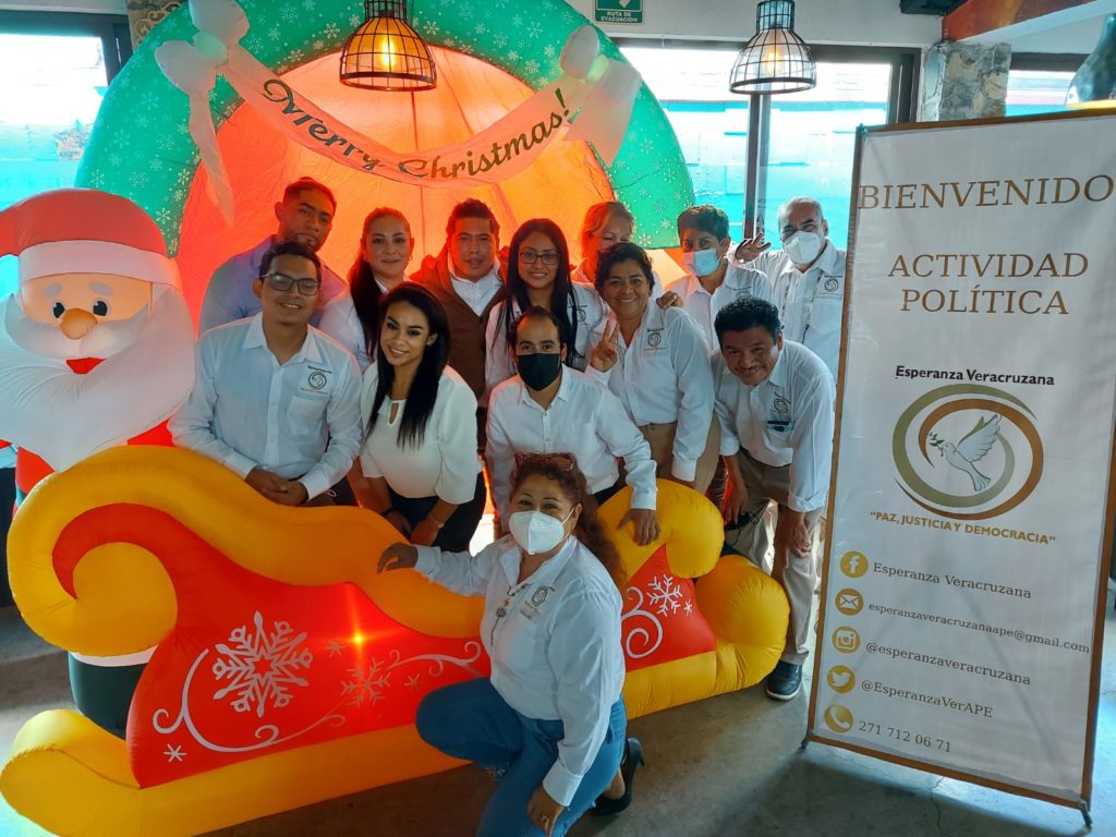 “Tenemos grandes retos para este 2022 y esos retos son en beneficio para las y los veracruzanos; sabemos que ha sido un año complicado por el tema de la pandemia, pero eso no nos ha detenido ni nos detendrá, pues seguiremos adelante con Esperanza Veracruzana”, expresó Saylong Aquino. Cabe mencionar que, en este encuentro se contó con la presencia de importantes miembros de este proyecto como de representantes municipales, distritales, así como el de la presencia del licenciado Mauricio Iván Aguirre Marín, Presidente de la Asociación Política “Esperanza Veracruzana”, quien dio la bienvenida a los asistentes, entregó nombramientos, no sin antes desear feliz Navidad y Próspero Año Nuevo 2022.
