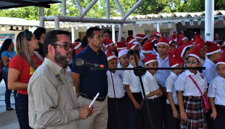 Agua Dulce, Ver. En el marco de los festejos navideños, alumnos, maestros y padres de familia de la Escuela Primaria “Aquiles Serdán”, fueron convocados por el alcalde Sergio Guzmán Ricárdez a estrechar la comunicación, a mantenerse unidos y a fomentar los valores, porque solo así “nuestro pueblo alcanzará la paz que tanto anhela”.