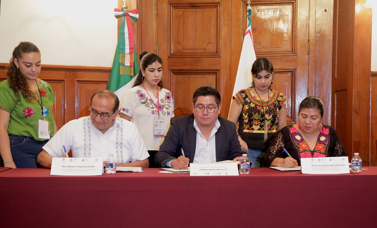 Firman convenio IVAIS e IVEA para atender rezago educativo en regiones indígenas