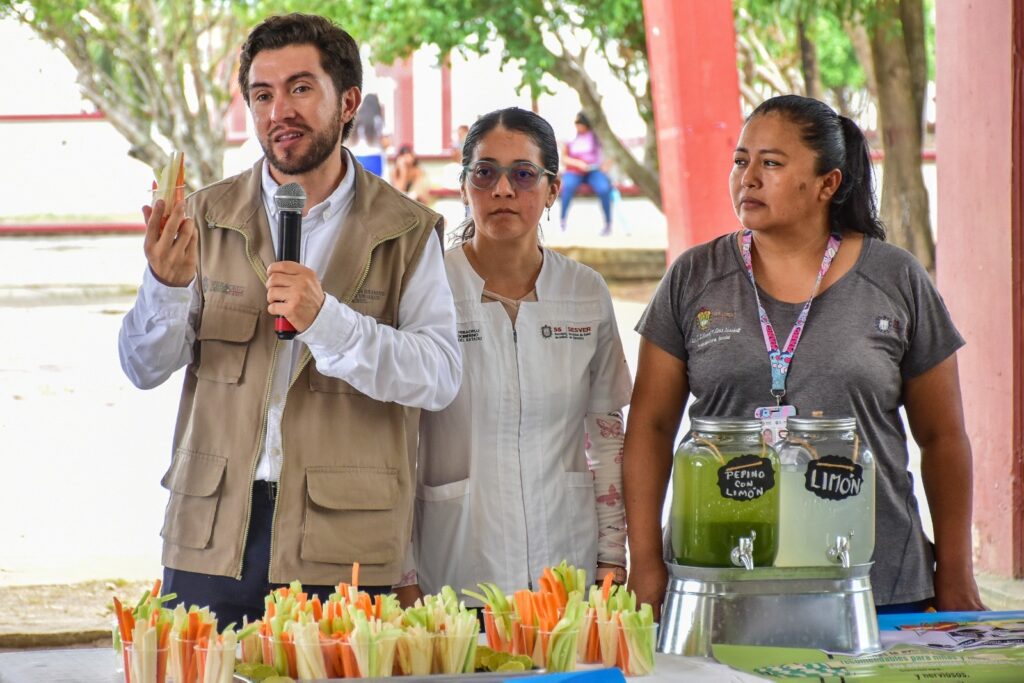 De la misma manera, se promovió la actividad física con ejercicios de estiramiento y una clase de zumba; al finalizar, se ofrecieron muestras gastronómicas, así como menús con frutas y verduras de temporada.