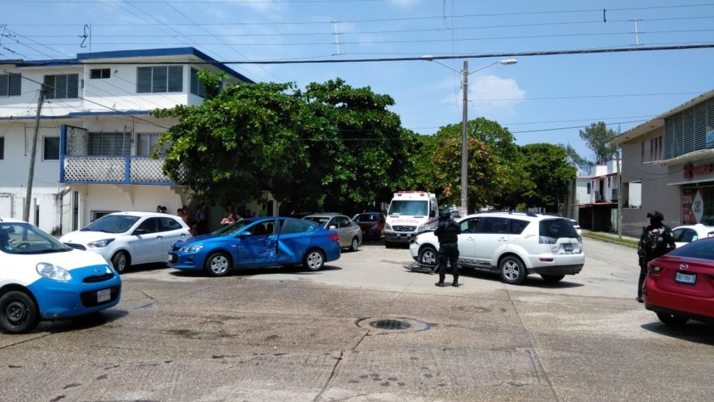 Dos damas lesionadas y cuantiosos daños materiales dejó aparatoso choque entre dos unidades particulares en el Centro de Coatzacoalcos.