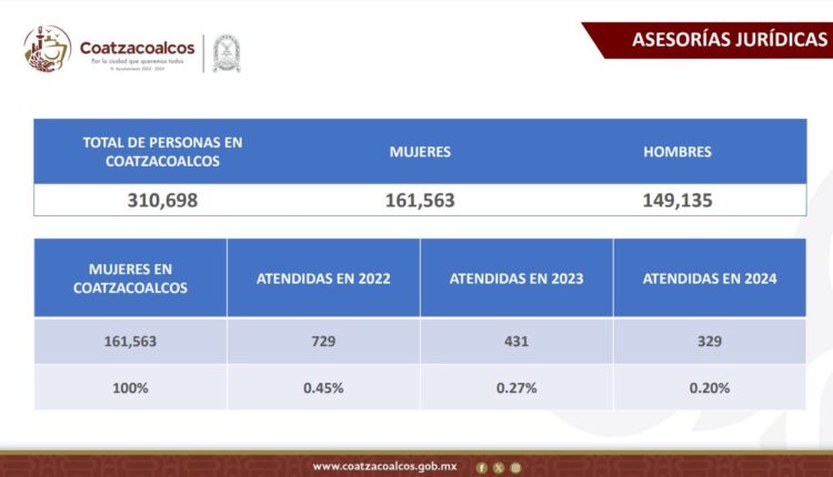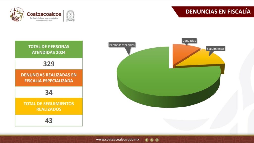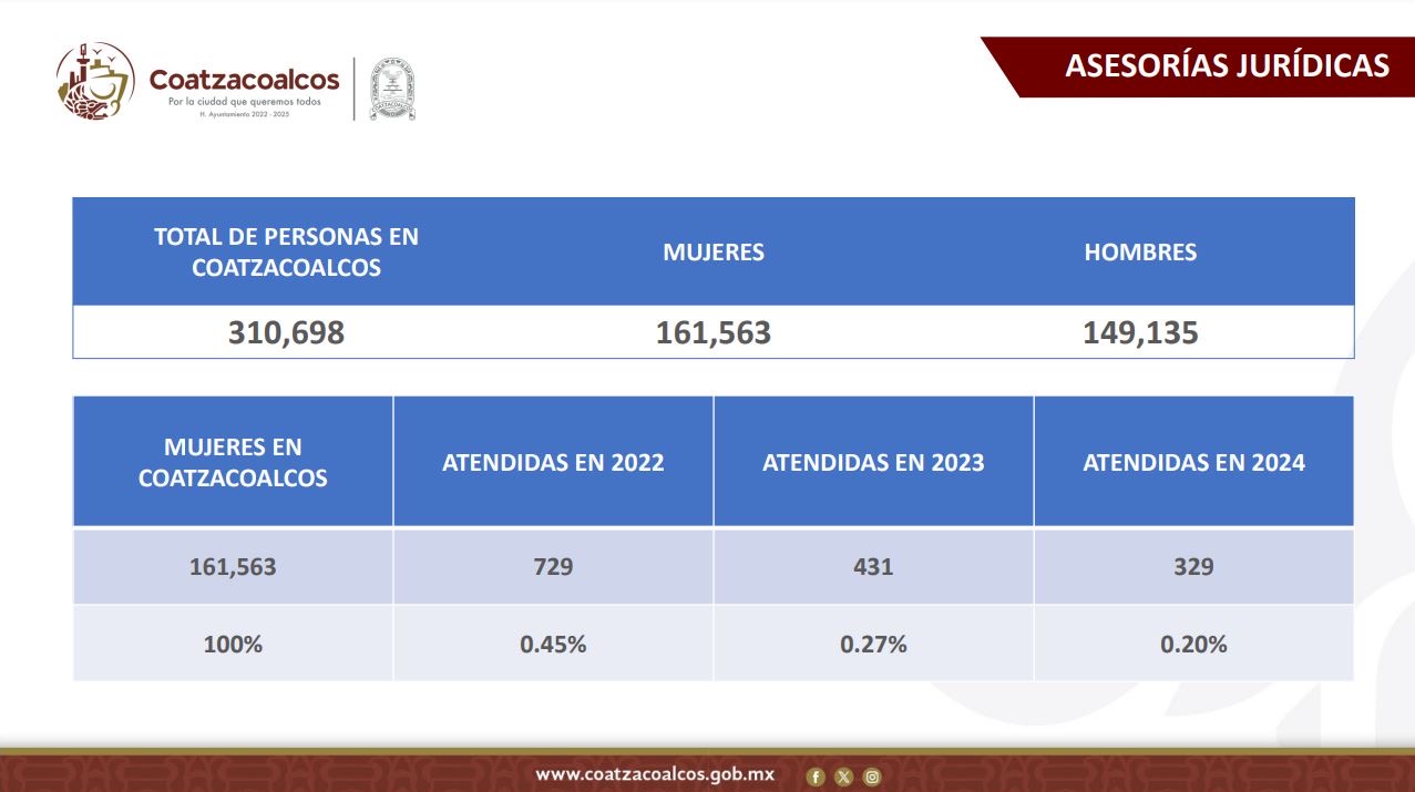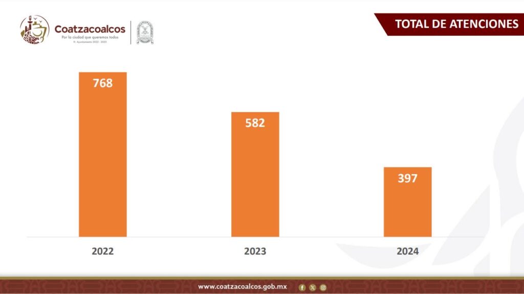 Por su parte la directora del Instituto Municipal de la Mujer (IMM), Rocío Espinosa Chevez, informó que en 2022 se atendió a 768 mujeres; en 2023 se brindaron asesorías a 582 mujeres y en lo que va del 2024 se han asistido a 397 mujeres que han sido víctimas de algún tipo de violencia.