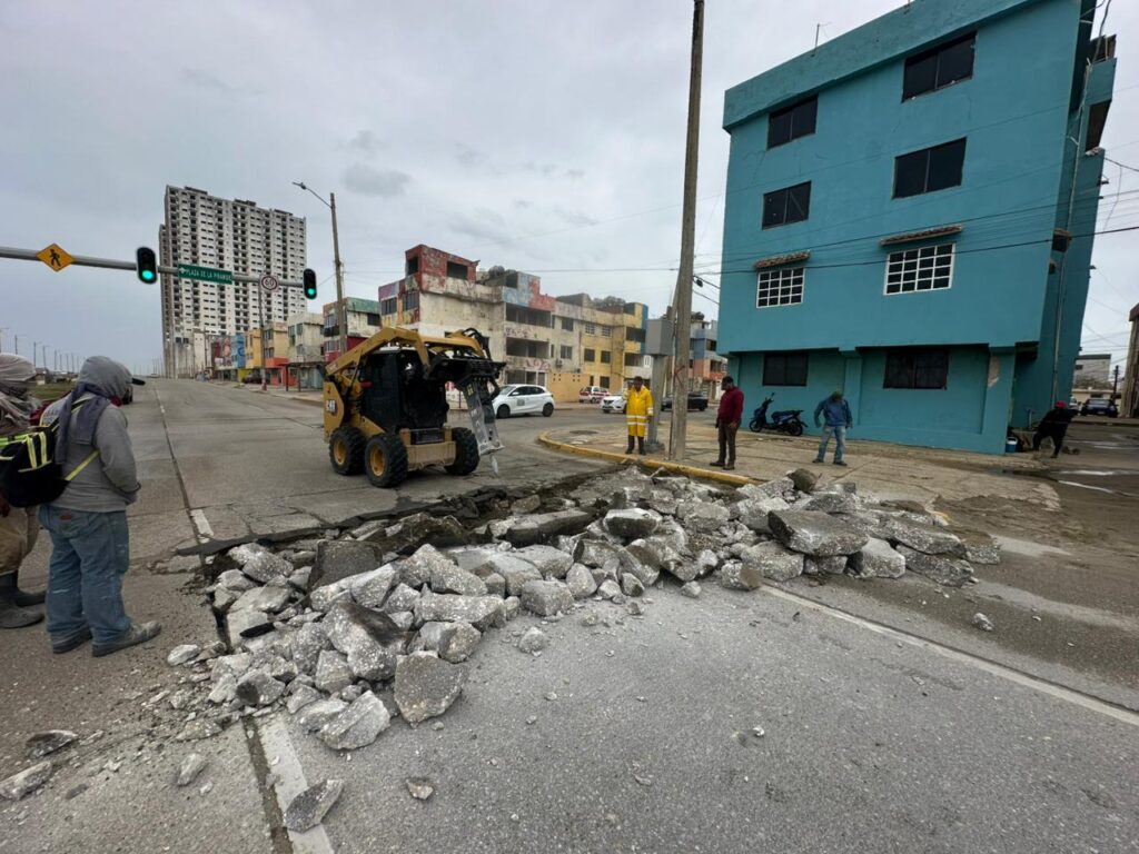 Una de las acciones más visibles es la rehabilitación de la carpeta de rodamiento del malecón costero, desde la avenida Álamo hasta el Hemiciclo a los Niños Héroes, a la altura de Venustiano Carranza, una zona estratégica tanto para la actividad turística como para la movilidad urbana.