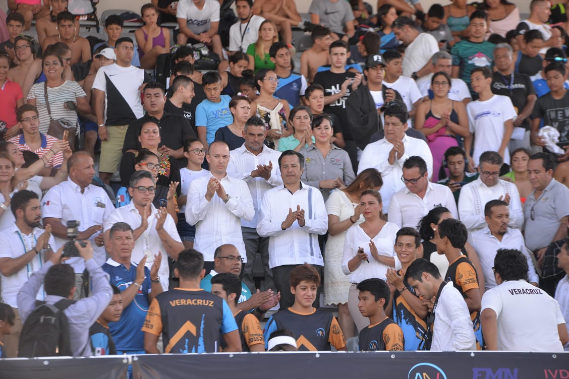 El Mandatario se congratuló por que los jóvenes practiquen este deporte que “forma personas dignas, fortalece los valores y desarrolla la sana competencia”. Asimismo, elogió a la delegación de Veracruz, pues en el primer día de competencia lidera el medallero.