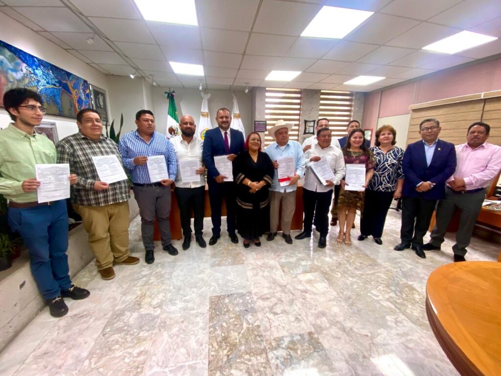 La presidenta de la Mesa Directiva de la LXVI Legislatura del estado, diputada Adriana Esther Martínez Sánchez, recibió a ocho presidentes y presidenta municipales que acudieron a la sede del Congreso del Estado a entregar sus respectivos proyectos de Ley de Ingresos y Presupuesto de Egresos municipales para el ejercicio fiscal 2025.