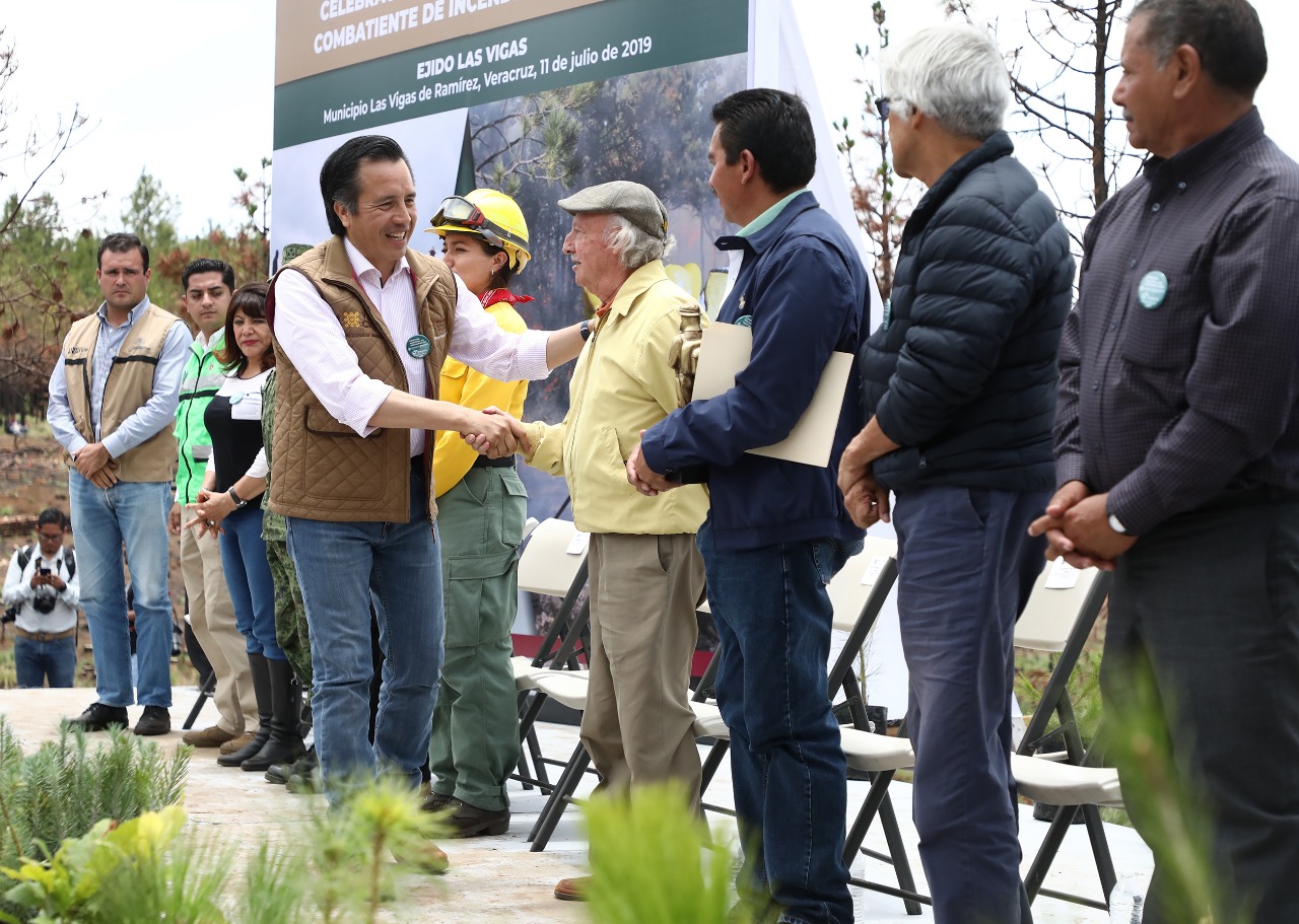 Al iniciar esta importante tarea en San Juan del Monte y Las Vigas, donde los días del 11 al 15 de marzo un enorme incendio consumió 480 hectáreas de bosque, se constataron los trabajos de aprovechamiento y restauración, gracias al esfuerzo de los tres órdenes de Gobierno y la sociedad; lo cual es un ejemplo de organización para sobreponerse a la tragedia y buscar el bien común.