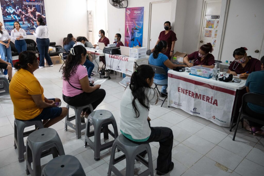 Señaló que hay tres consultorios para atender a la población, donde cada uno recibe en promedio alrededor de 30 personas por día. Agregó que la semana pasada, cuando inició esta jornada en la colonia Constituyentes, incluso se rebasaron las cifras, atendiendo hasta 100 pacientes diarios.