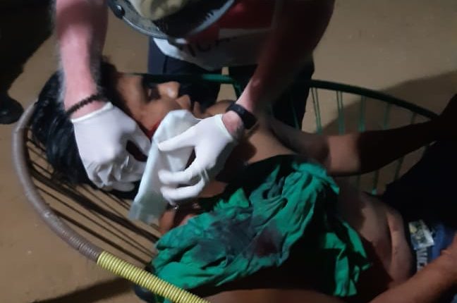 De dos machetazos, uno en el rostro y otro uno en el brazo derecho, resultó lesionado un individuo que fue atacado por personas desconocidas y tuvo que ser auxiliado por personal de la Cruz Roja.
