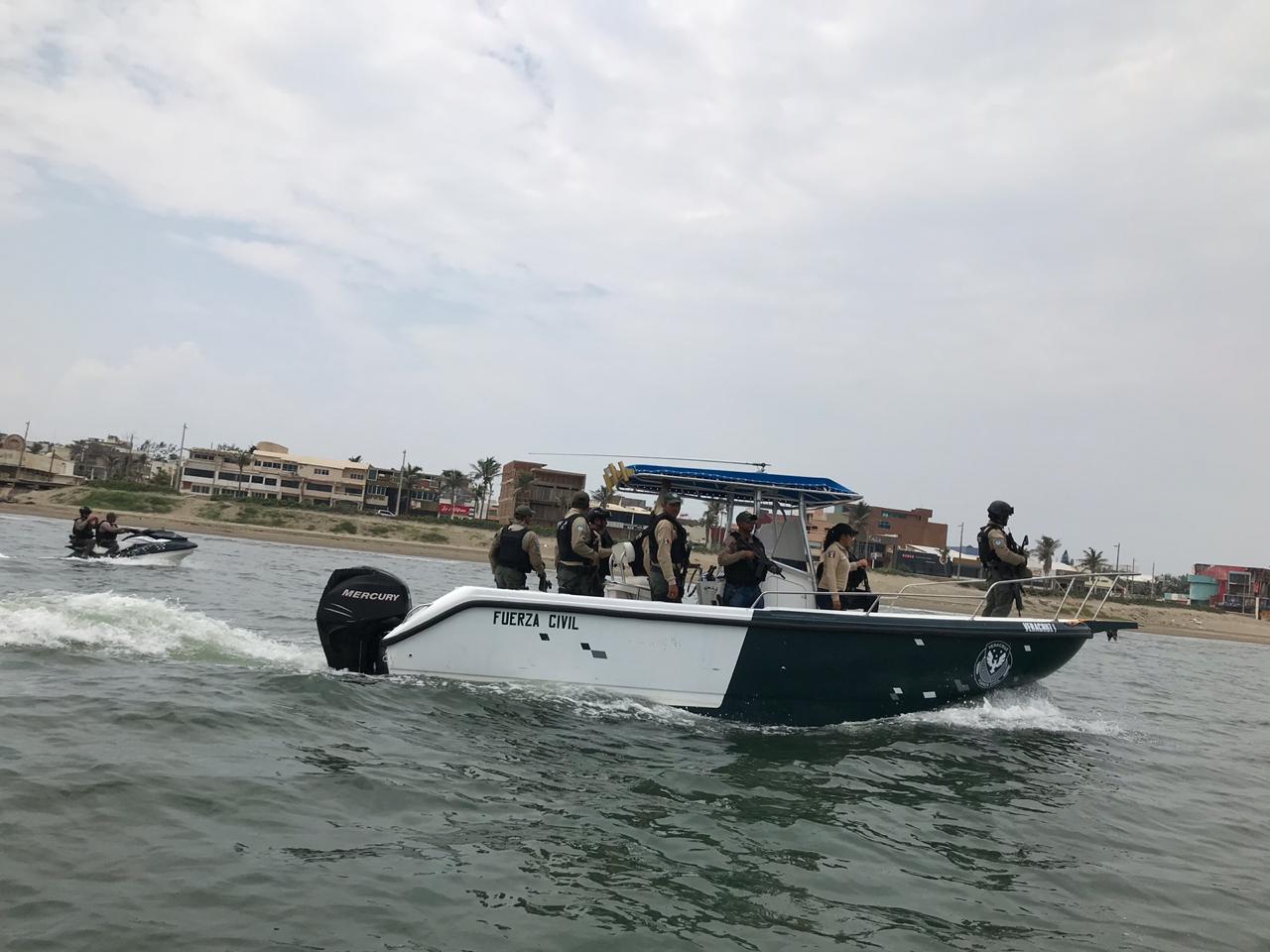 Con la finalidad de resguardar a la ciudadanía y prevenir el delito, elementos de la Fuerza Civil recorren playas y el río Coatzacoalcos orientando a turistas y apoyando a quienes navegan por el afluente.