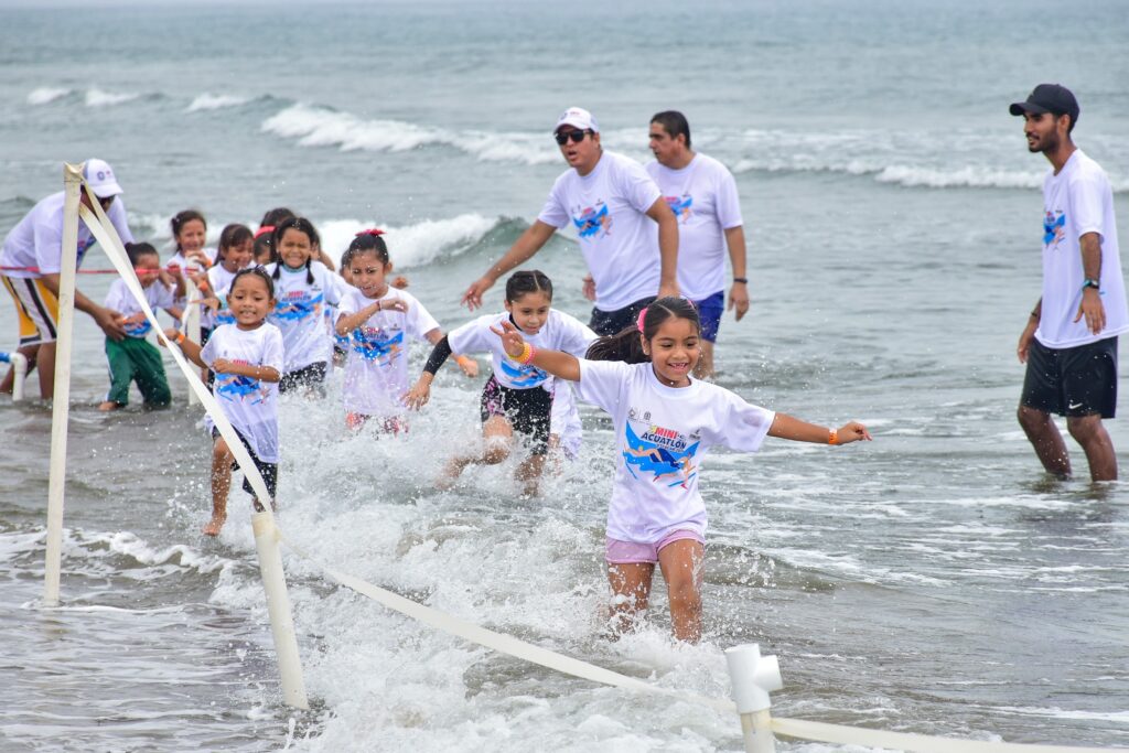 El Mini Acuatlón Escolar tuvo como objetivo promover la actividad física, el trabajo en equipo y el espíritu deportivo entre los más pequeños de nuestra comunidad. Los participantes, con edades comprendidas entre los 5 y 6 años, tuvieron la oportunidad de demostrar sus habilidades en pruebas de splash (chapoteo en el mar) y carreras adaptadas a sus capacidades y necesidades, así como dos categorías destacadas, la inclusiva para niños con capacidades diferentes y relevos donde padres de familia pudieron participar con sus hijos en un ambiente seguro y controlado.