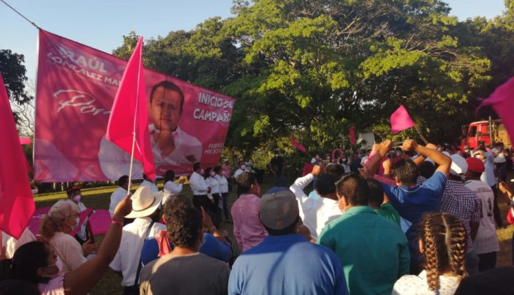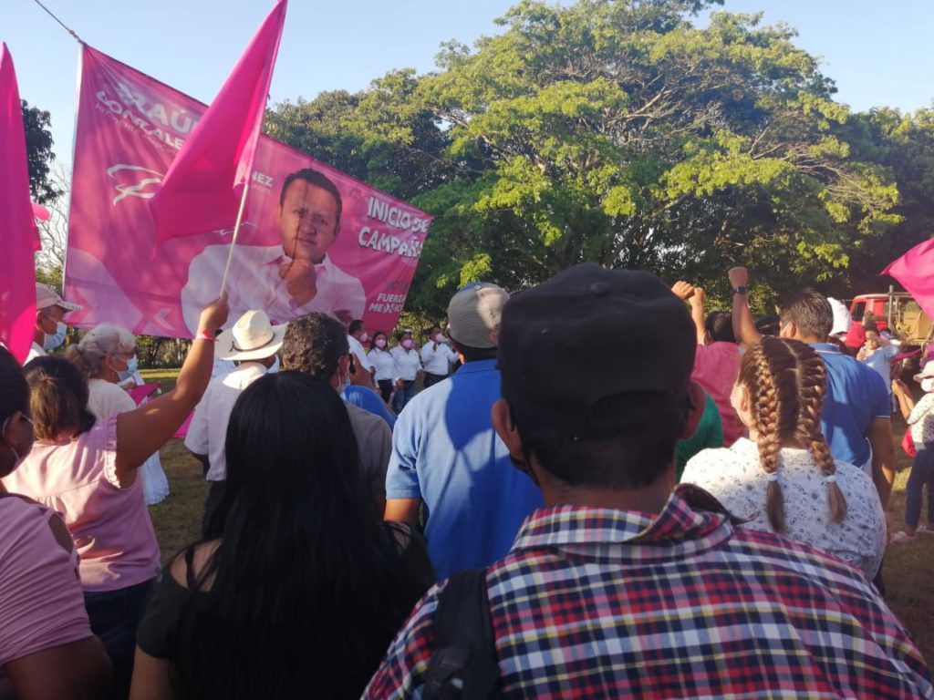 Con porras, aplausos y con los brazos abiertos recibieron hombre y mujeres de Ixhuatlán del Sureste a Raúl González Martínez por la Alcaldía de este municipio, quien es abanderado por el partido político Fuerza por México.
