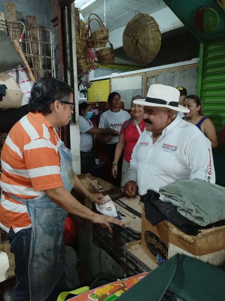 Los dos principales centros de abasto popular, el mercado Morelos y el Coatzacoalcos se vistieron de Morena con la visita del médico pediatra Roberto Ramos Alor, candidato a diputado federal