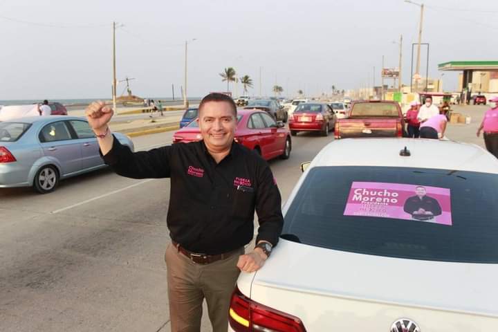 Muestras de apoyo para Chucho Moreno en el malecón de Coatzacoalcos