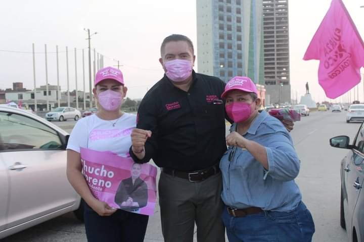 Una ola rosa integrada por jóvenes entusiastas de Fuerza por México, la tarde de este sábado colocaron micro perforados a los automóviles que circulaban por el malecón costero, en apoyo al candidato a la Presidencia Municipal de Coatzacoalcos, Chucho Moreno.