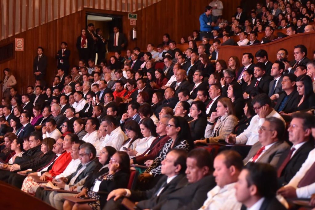 En la sala “Emilio Carballido” del Teatro del Estado, el gobernador dio lectura al contenido de su Informe, resaltando diversas acciones y programas de su administración, principalmente en las áreas de austeridad y honestidad, desarrollo económico, justicia social, derechos humanos y cultura de paz.