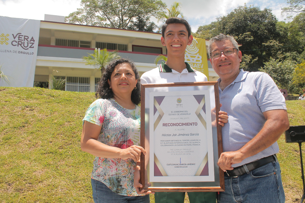 La Secretaría de Educación de Veracruz (SEV) reconoció al joven Héctor Jair Jiménez García, por ser uno de los cuatro seleccionados nacionales que participará en la Olimpiada Iberoamericana de Química, que se realizará del 06 al 15 de septiembre en Oporto, Portugal.