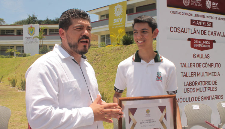 Por ser un orgullo para Veracruz, el gobernador Cuitláhuac García Jiménez, entregó un reconocimiento a Héctor Jair por su esfuerzo y dedicación al estudio, en el marco de la inauguración de las instalaciones del plantel número 52 del municipio de Cosautlán.