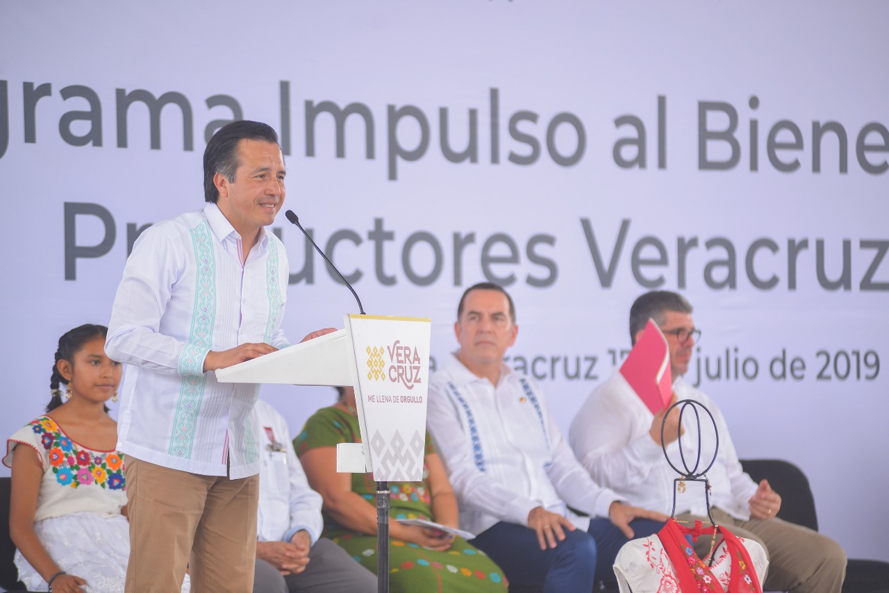 El gobernador Cuitláhuac García Jiménez y el titular de la Secretaría de Desarrollo Económico y Portuario (SEDECOP), Enrique Nachón García, pusieron en marcha el programa Impulso al Bienestar de los Productores Veracruzanos que dará prioridad a artesanos y pequeños fabricantes de los municipios de alta y muy alta marginación.
