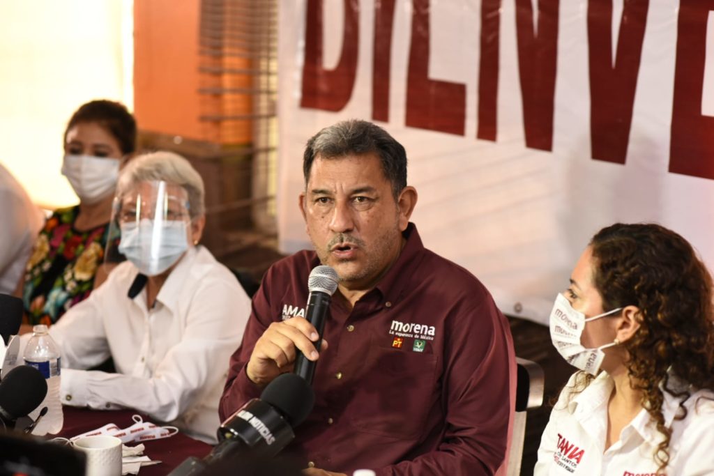 En rueda de prensa, acompañado de las candidatas de Morena a la diputación federal por el Distrito XI, Tania Cruz Santos; y local urbana, Eusebia Cortés Pérez, señaló que su anhelo es que Coatzacoalcos se dé la oportunidad de tener un gobierno que promueva la inversión, las políticas de seguridad ciudadana y que brinde servicios municipales con una visión a largo plazo.