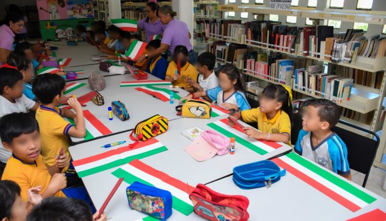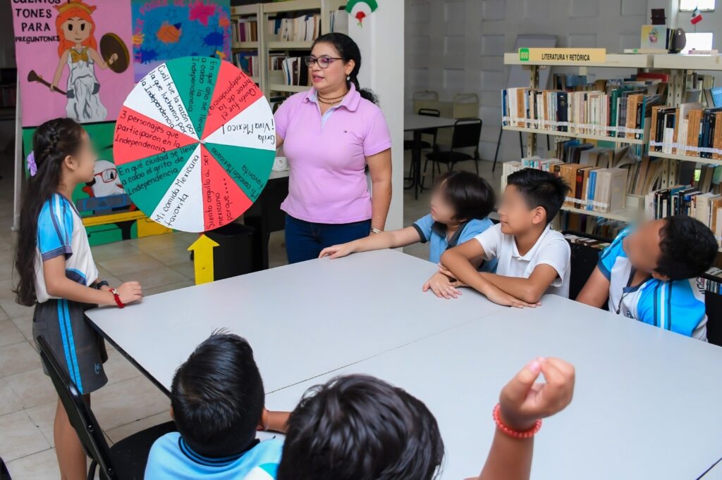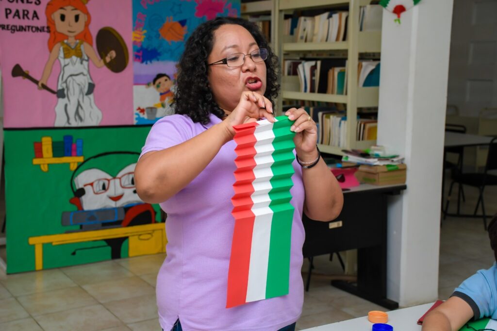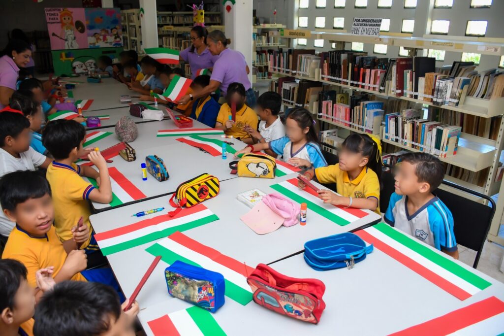 Posteriormente tuvieron una plática sobre el préstamo de libros y cómo obtener la credencial para llevarse uno a casa; les contaron un cuento de la Independencia de México a través del teatro ‘Kamishibai’, una técnica japonesa milenaria, y al final realizaron un abanico de papel con los colores patrios.